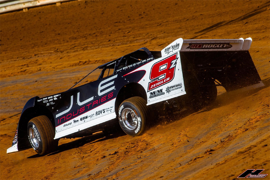 Mason Zeigler blasts through the corner at Hagerstown (MD) Speedway in April 2022 -
