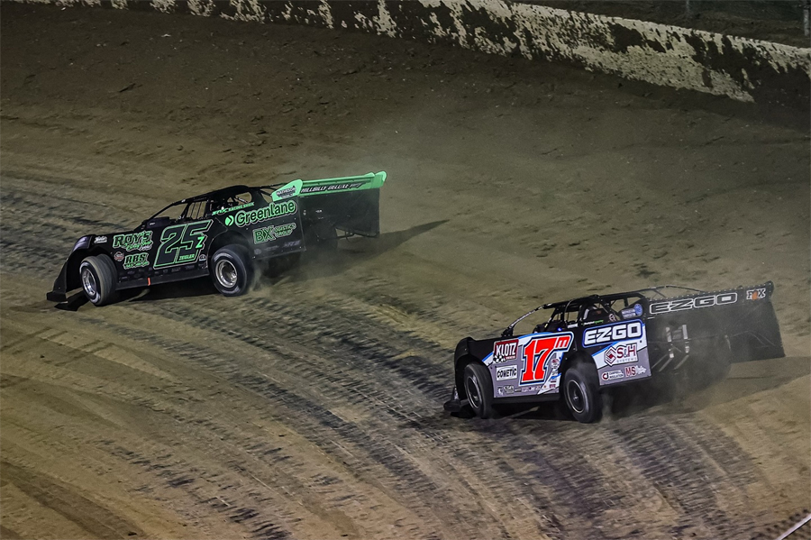 Mason Zeigler wins a heat race during the Dirt Track World Championship in 2024 - Zach Yost Racing Photography